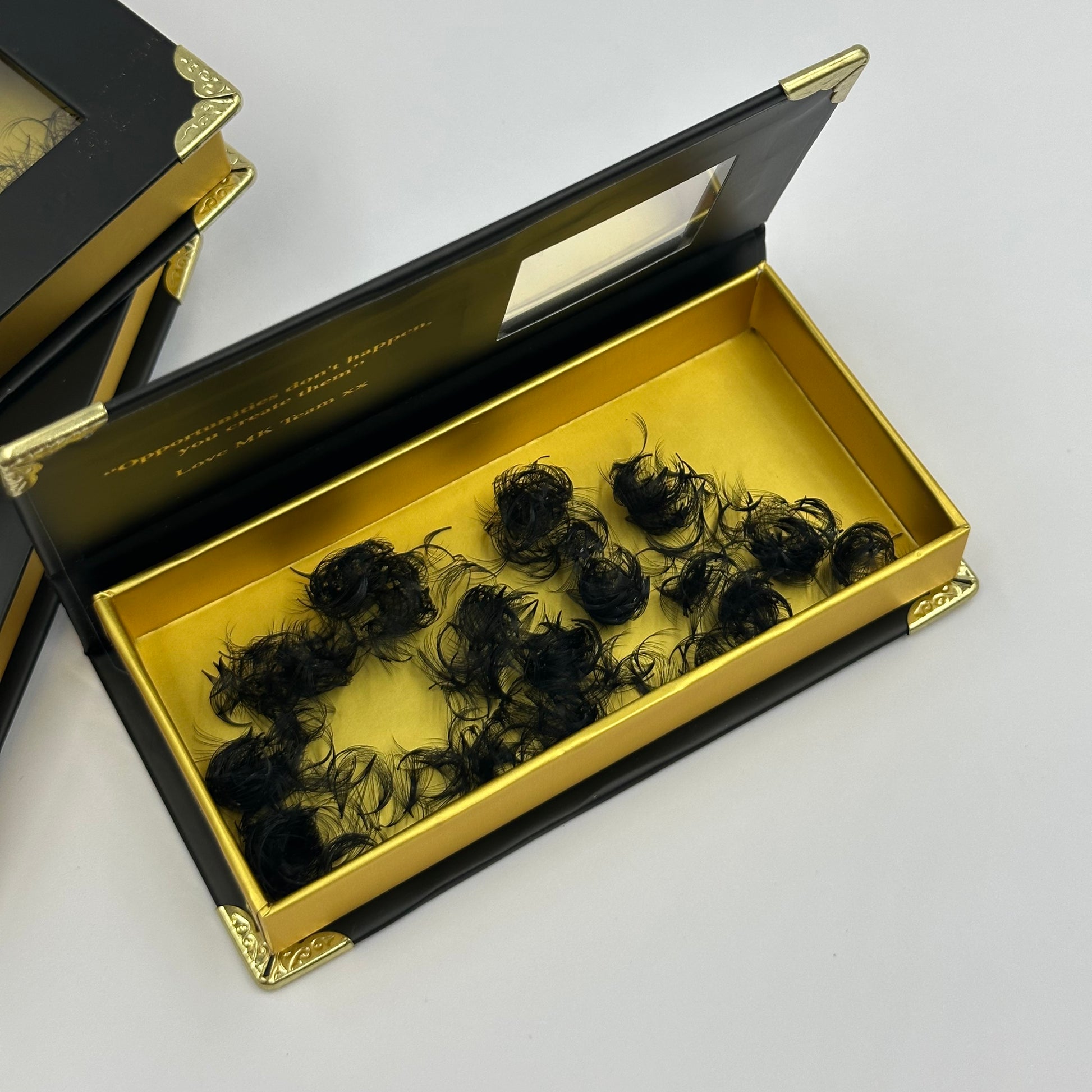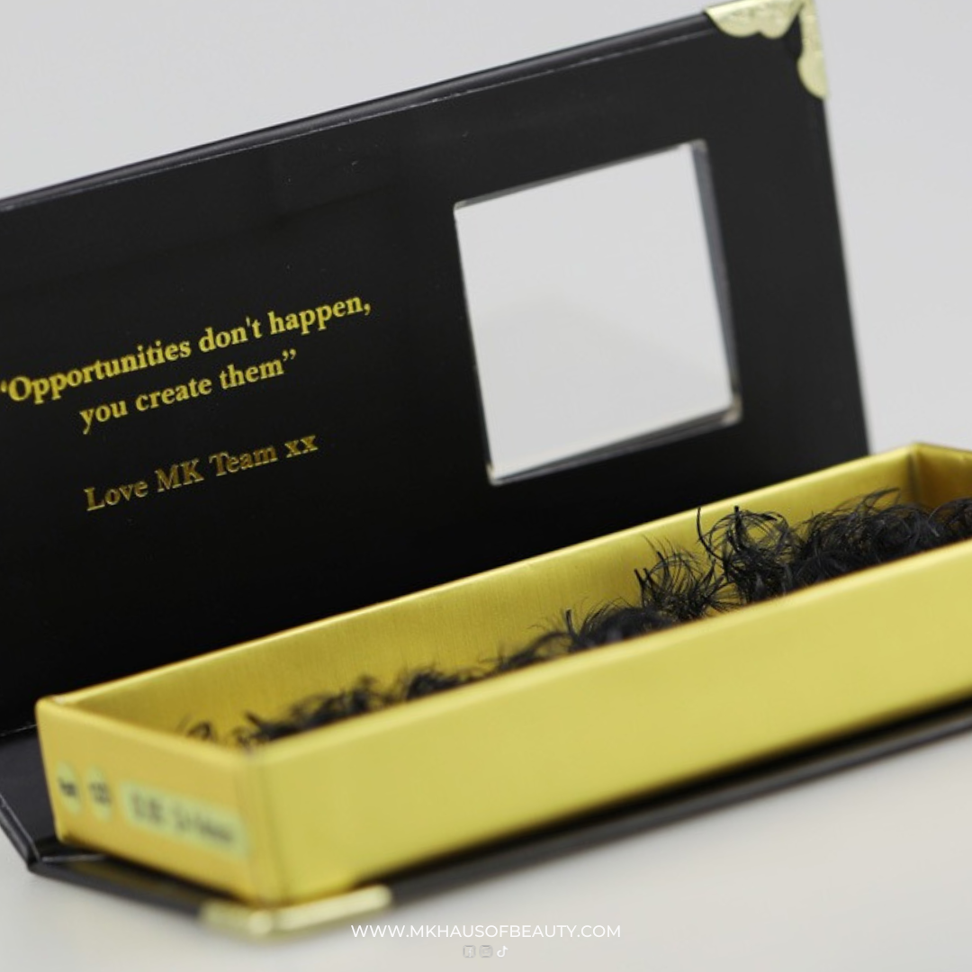 The Elite Promade Loose Fan is designed by lash artists made for lash techs! Designed to be the softest Promade Fan on the market. Striving for the highest quality control, from sourcing raw materials, to manufacturing to evaluating final stages for this product, Producing the darkest and softest highest quality Korean PBT creating a mink silk like fluffy ultra light weight lash fan with a narrow base for the ultimate handmade look in half the application time! Did we mention our new magnetic cardboard aren’t just a beautiful aesthetic stock range, the boxes are ecofriendly too!