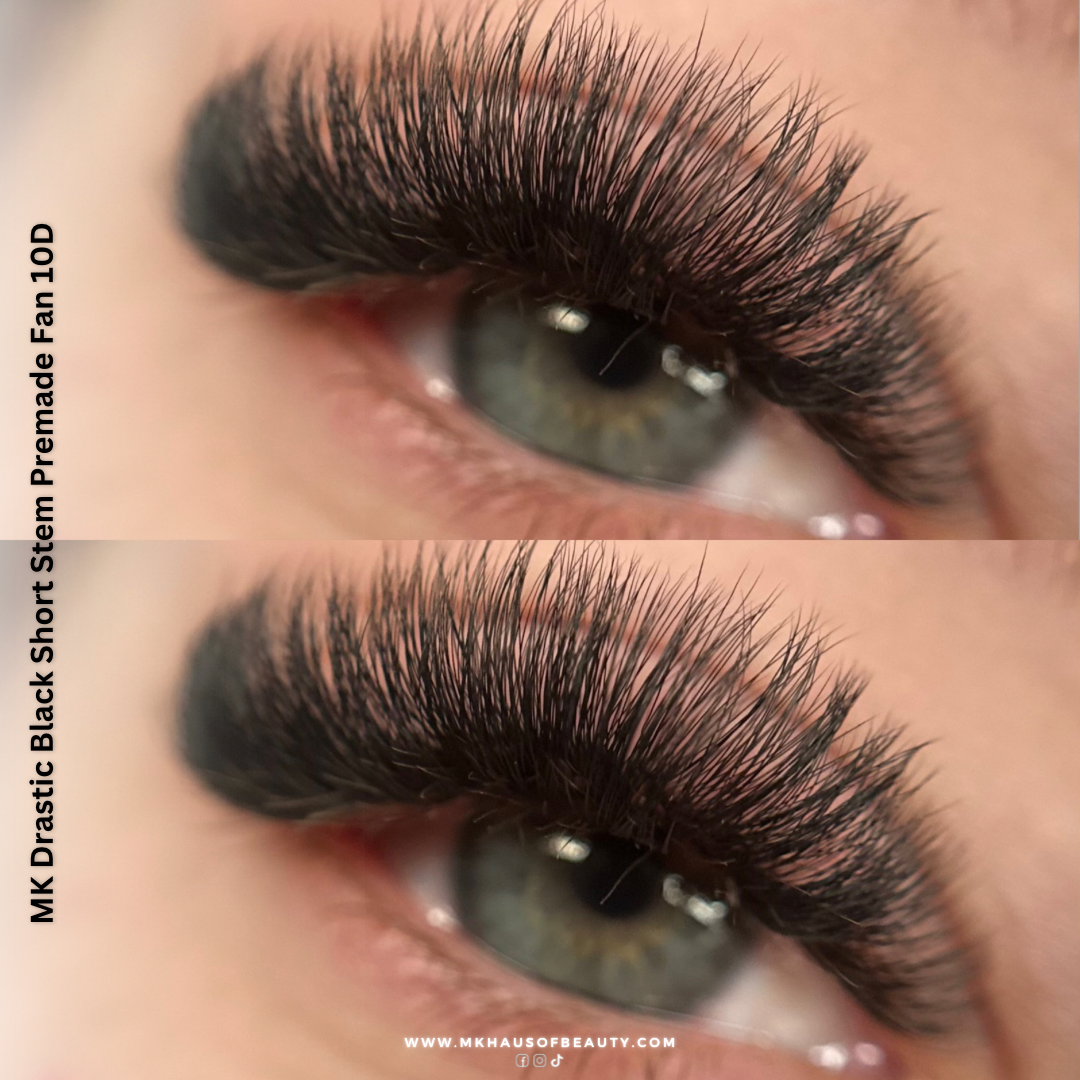 Looking for the perfect premade hand and want to achieve the handmade look? We got you covered! Our 10D MK Drastic Black Short Stem Premade Fans are known to be the darkest premade fans for express volume lashes!