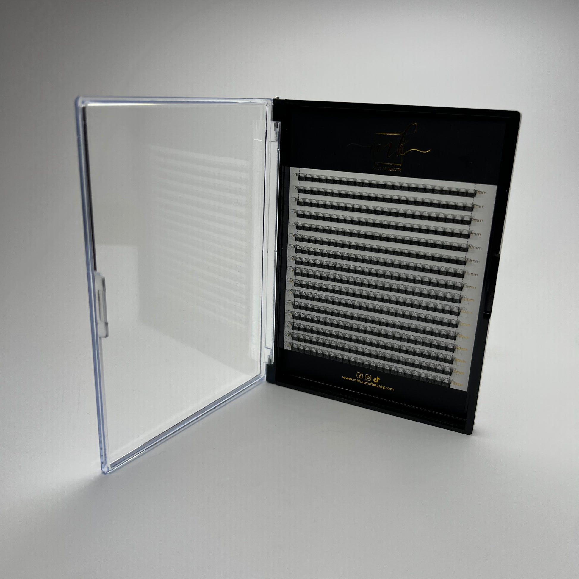 Designed and manufactured by MK Haus Of Beauty with a premium high-quality Korean Silk material with a matte black finish! This unique fibre closely resembles the feeling and flexibility of natural eyelashes, with the darkest finish available in the industry.