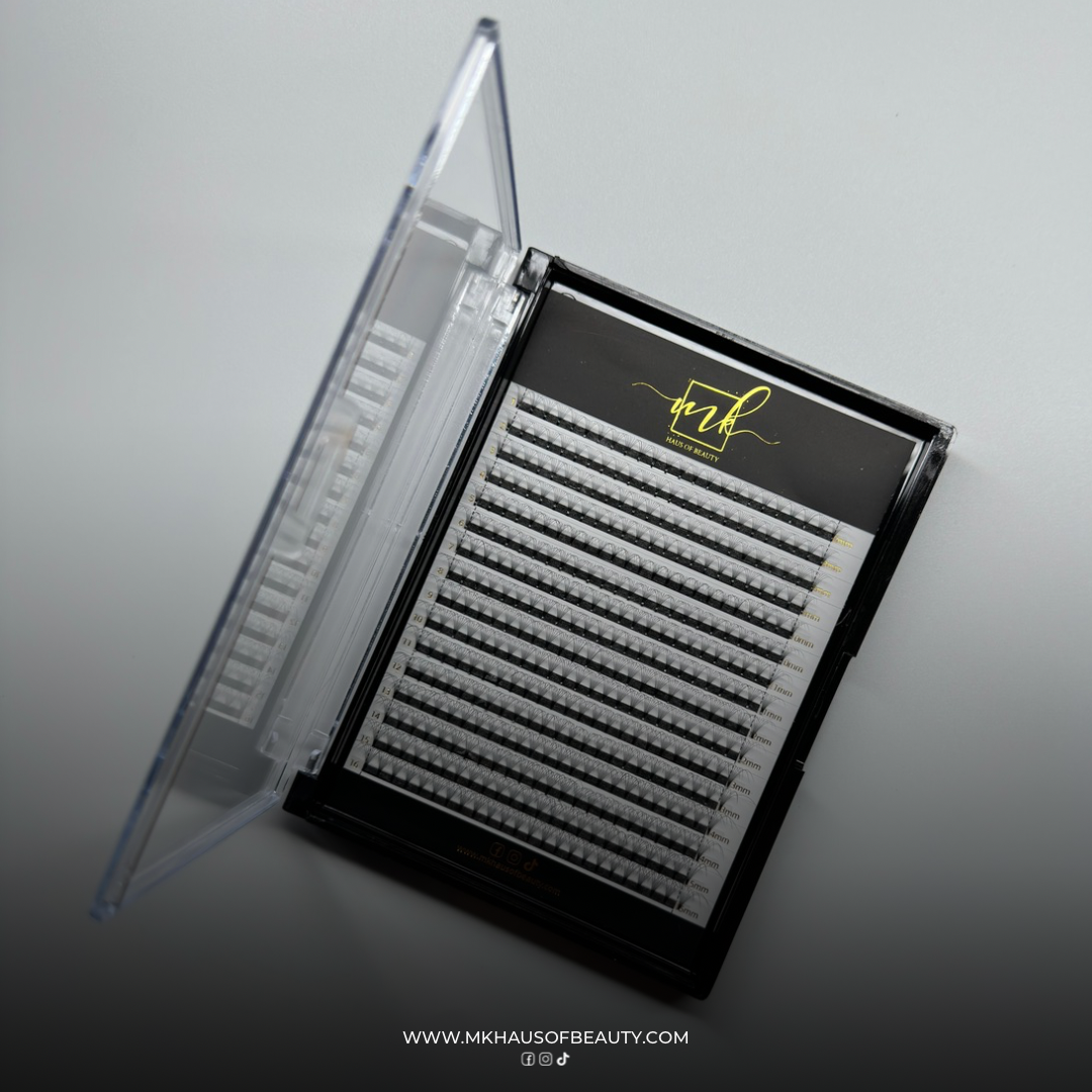 Designed and manufactured by MK Haus Of Beauty with a premium high-quality Korean Silk material with a matte black finish! This unique fibre closely resembles the feeling and flexibility of natural eyelashes, with the darkest finish available in the industry.