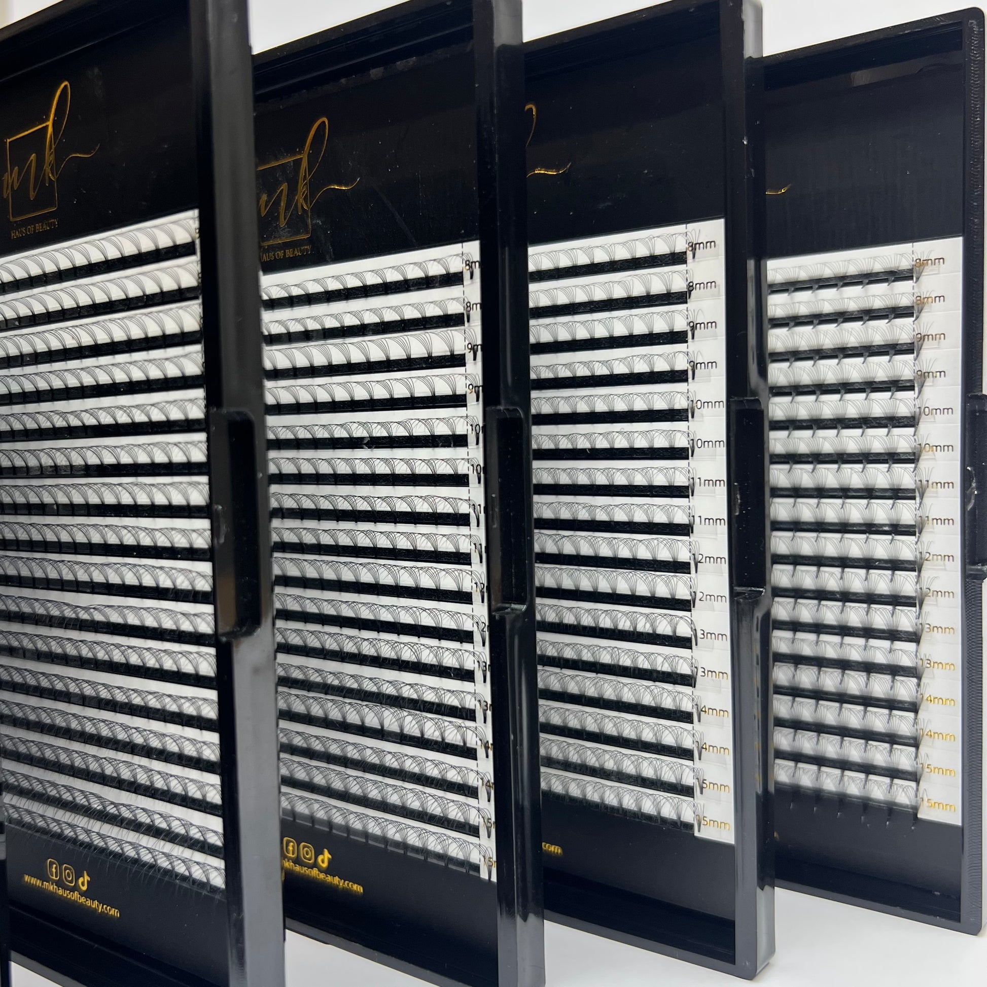 Ready to sample our volume fans?! Designed and manufactured by MK Haus Of Beauty with a premium high-quality Korean Silk material with a matte black finish! This unique fibre closely resembles the feeling and flexibility of natural eyelashes, with the darkest finish available in the industry.